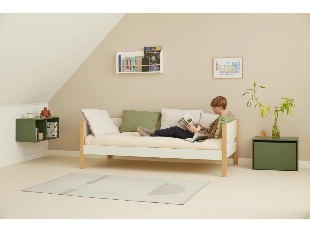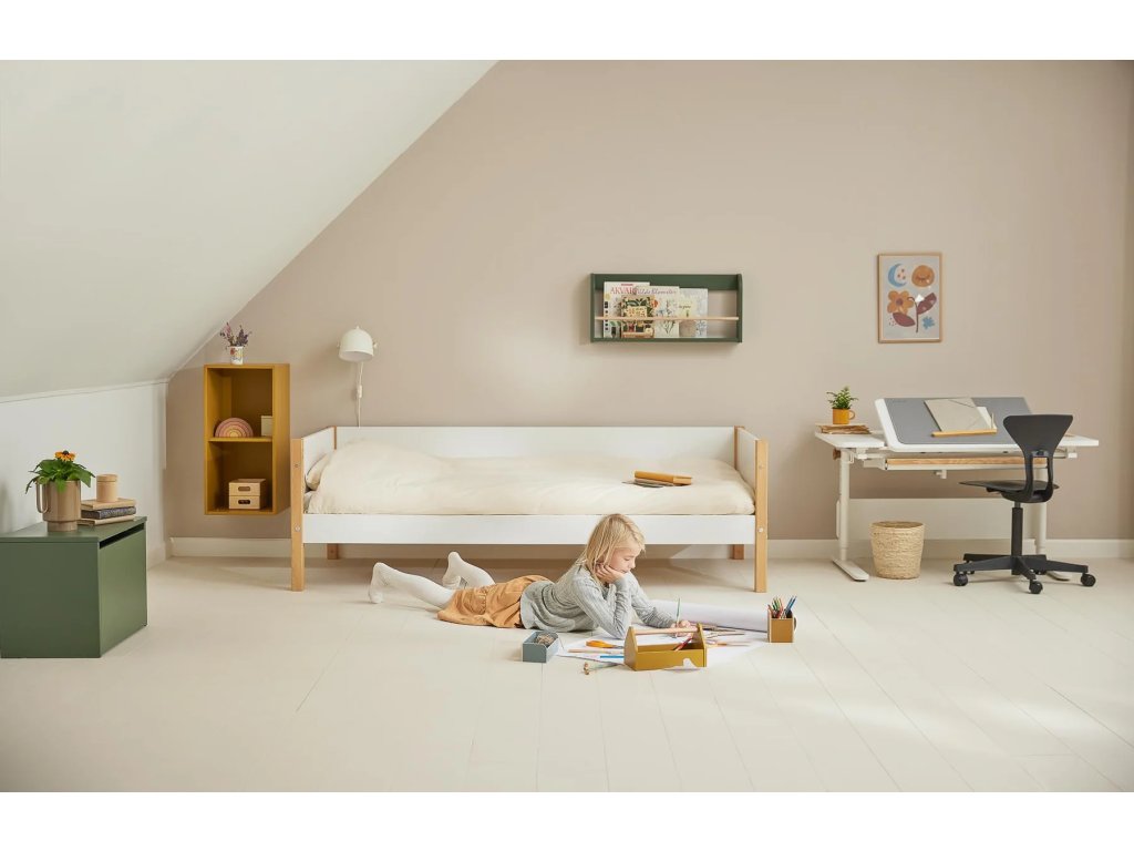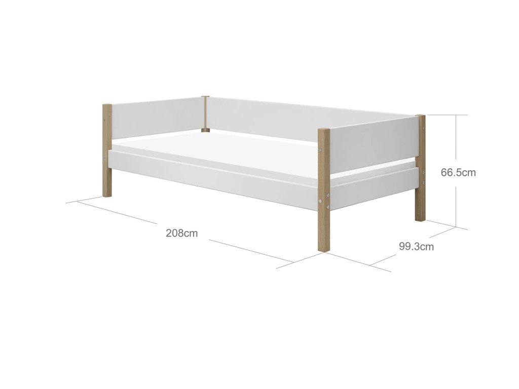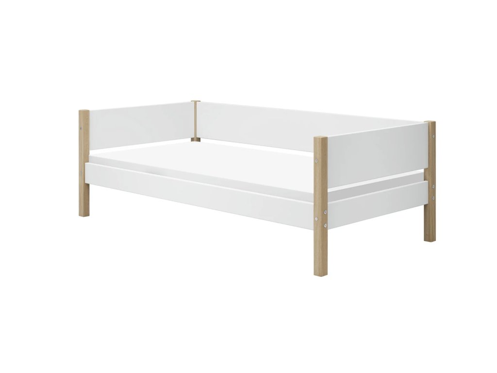 Jednolůžko NOR s čelem u hlavy i nohou, se zadní zábranou. Použijte postel pro dítě, které vyrostlo z juniorské postele. Přidejte bezpečnostní zábranu, abyste poskytli dítěti extra bezpečí. Nebo použijte postel pro dospívající a vytvořte v místnosti příjemnou atmosféru. Přidáním vyšších nohou k posteli vám umožní přeměnit jednolůžko na středně vysoké nebo vysoké lůžko. Postel je vyrobena z vysoce kvalitní MDF a má nohy z masivního dubu. Doporučený věk: Od 3 let.