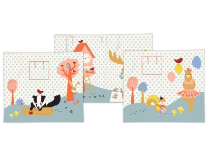 Polštář ze sbírky Les s ježekem na jedné straně. Vystavené kusy